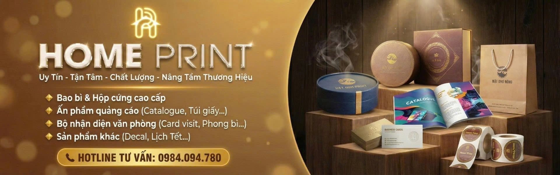 Với hơn 10 năm kinh nghiệm trong lĩnh vực in ấn CÔNG TY CP IN, THIẾT KẾ HOME PRINT luôn tự hào là đối tác đáng tin cậy của hàng nghìn cửa hàng, doanh nghiệp trong hành trình xây dựng thương hiệu.