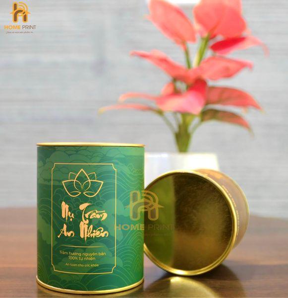 - Hộp giấy trụ tròn với chất liệu kín khí có khả năng ngăn chặn không khí, độ ẩm và ánh sáng tiếp xúc với trầm, bên ngoài hộp được cán một lớp màng nilon có khả năng chống thấm nước, thiết kế nắp đậy kín, giúp bảo quản hương và chất lượng của trầm tốt hơn.